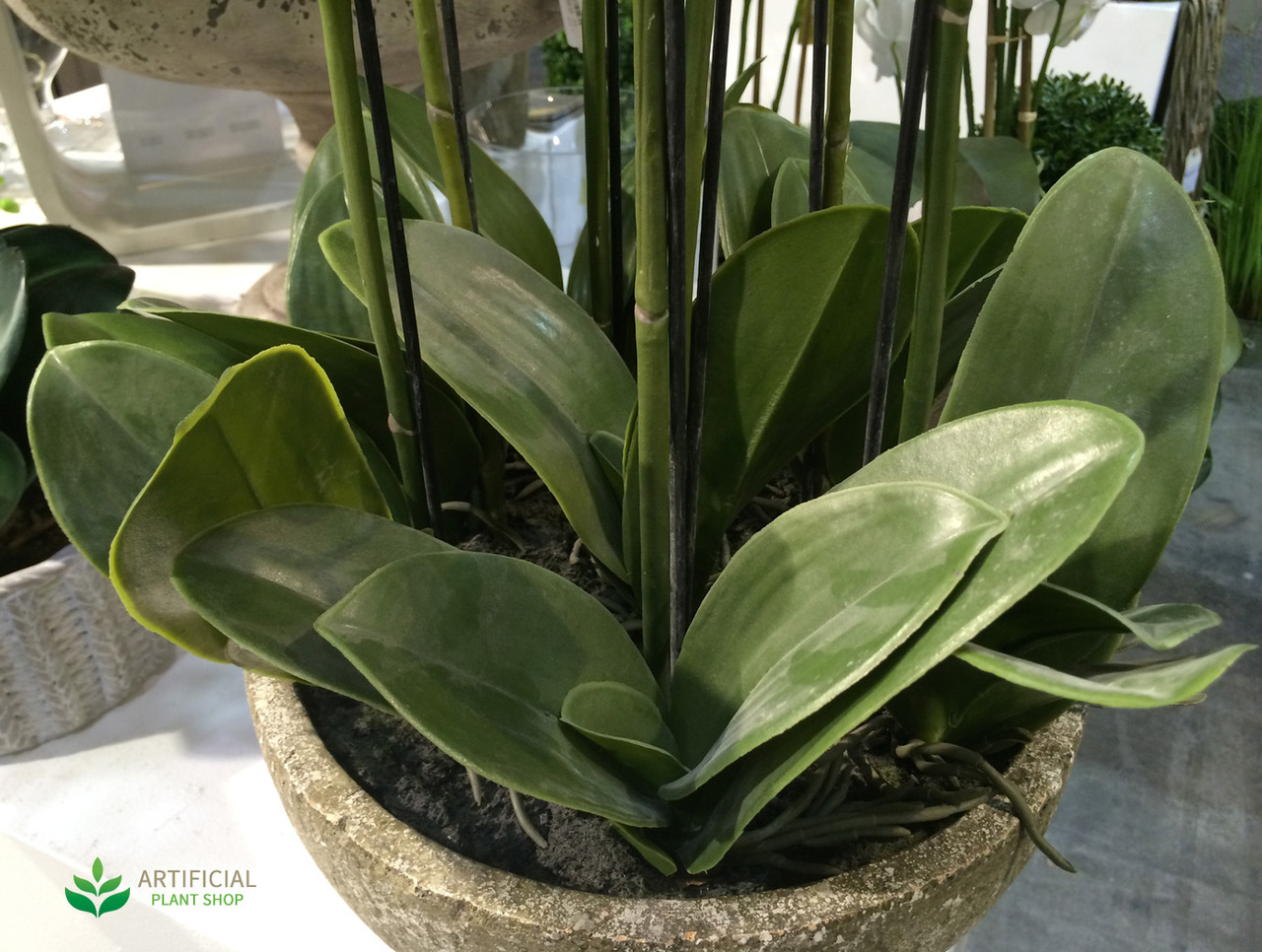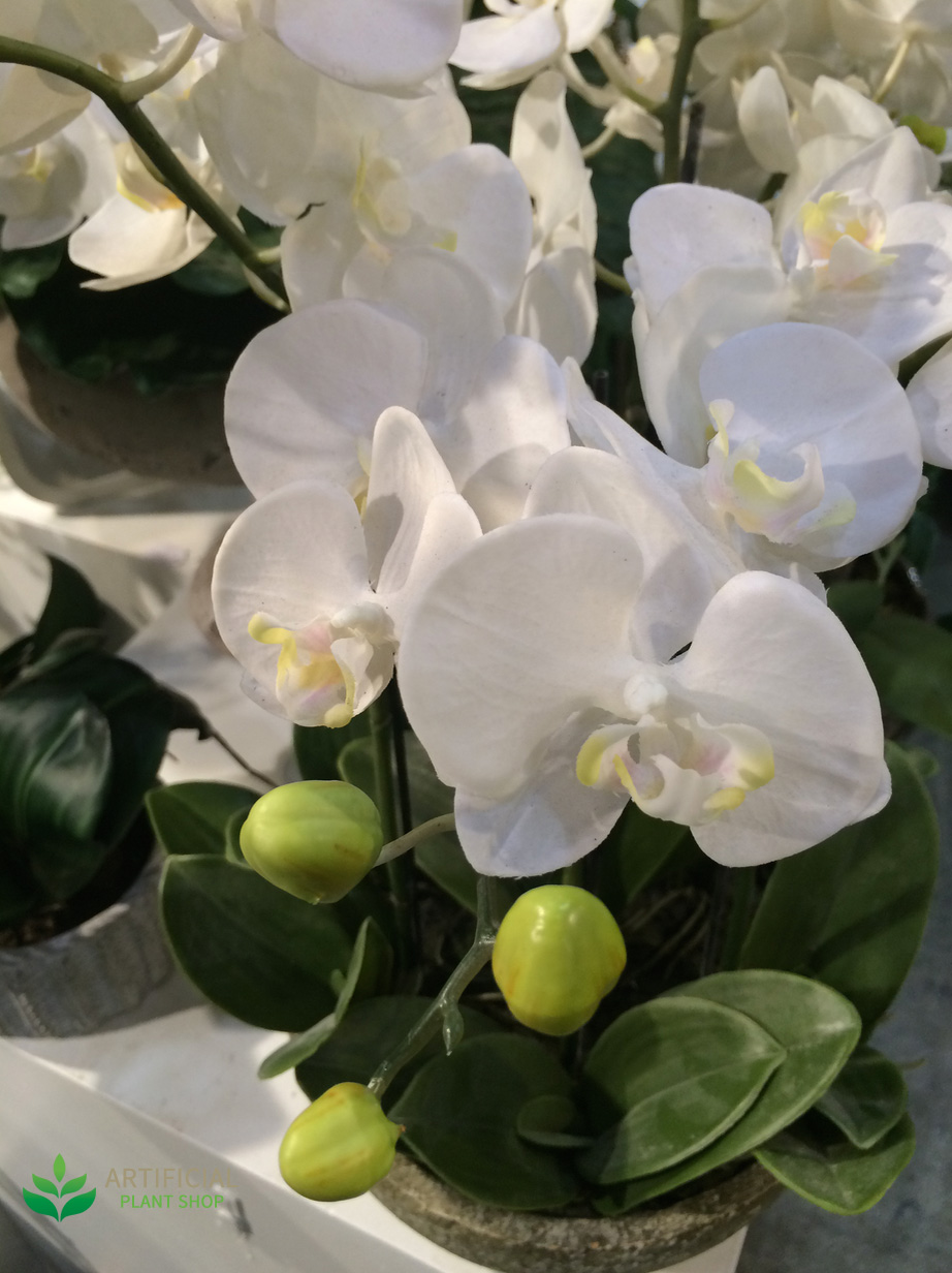 The timeless white colour complements a variety of interior colour schemes and themes. Whether you have a modern or contemporary home, it will add a Gorgeous impact to any setting. In addition to its white flowers, there are lifelike stems, roots and luscious leaves for a exquisite appearance. You don’t need purchase a separate pot as it already comes with a rustic looking round clay pot that enhances the overall look and feel. Measuring 62 centimetres, it's perfect as a centrepiece of your dining table. You can also position it on a display cabinet or on a coffee table. You could even give this artificial orchid as a gift… be warned though, you won’t want to give it away when you see it.