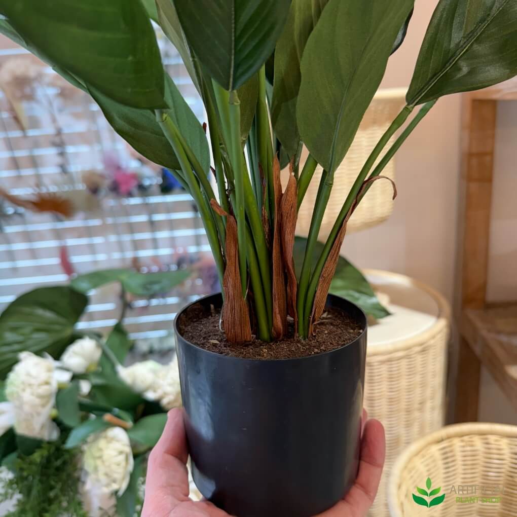 With the classic white Lily flower that provides stunning contrast to the rich green leaves, giving it that pop of colour. Being 53 centimetres in height. Also known as a Peace Lily, this is one of the most popular indoor plants and our artificial version captures all of its elegance and charm without any of the maintenance headaches. This is a perfect plant to use in planter boxes and tambour units (filing cabinets that have a planter box on top) and is on of our go-to choices for commercial projects.