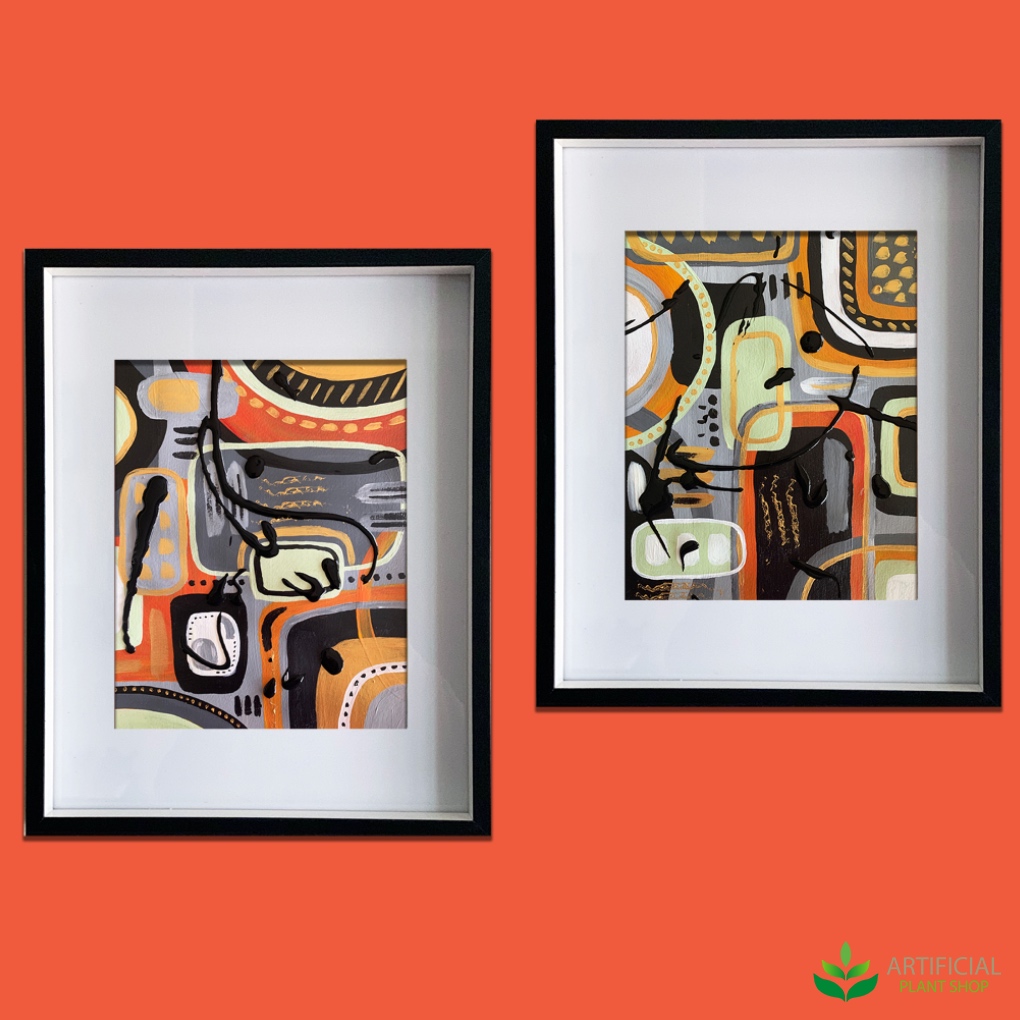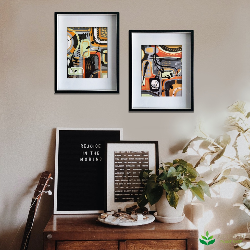The pair are ready to hang, or can be placed on a side table, entrance way or mantle as the frames have a stand at the back. The artworks can also be placed either vertically or horizontally.