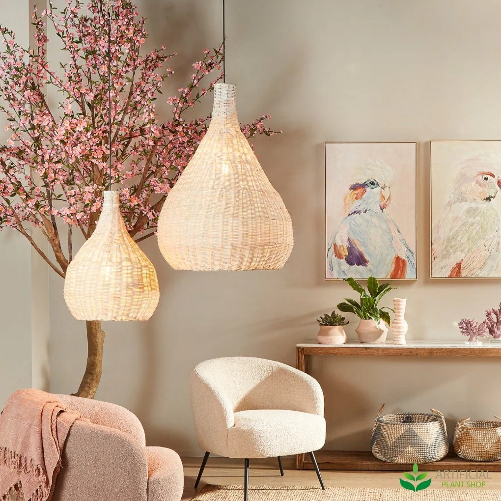If you're searching for a tall tree that is full of detail, looks just like the real thing and real makes a statement, then this is for you! Exquisite craftsmanship from top to bottom, this artificial Cherry Blossom Tree stands proud at 2.4 metres tall, ideal for those high ceiling areas, whether in the home or office. The worst part about a real tree is the continual care and attention they require, watering pruning and just the right amounts of sunlight... too much or too little and they'll be saying sayonara. We have all got so much going on in our lives and artificial trees allow us to save time to do more of what we love. Spoil yourself with this beautiful Cherry Blossom Tree! The real timber trunks and stunningly detailed flowers make this Tree truly unforgettable.