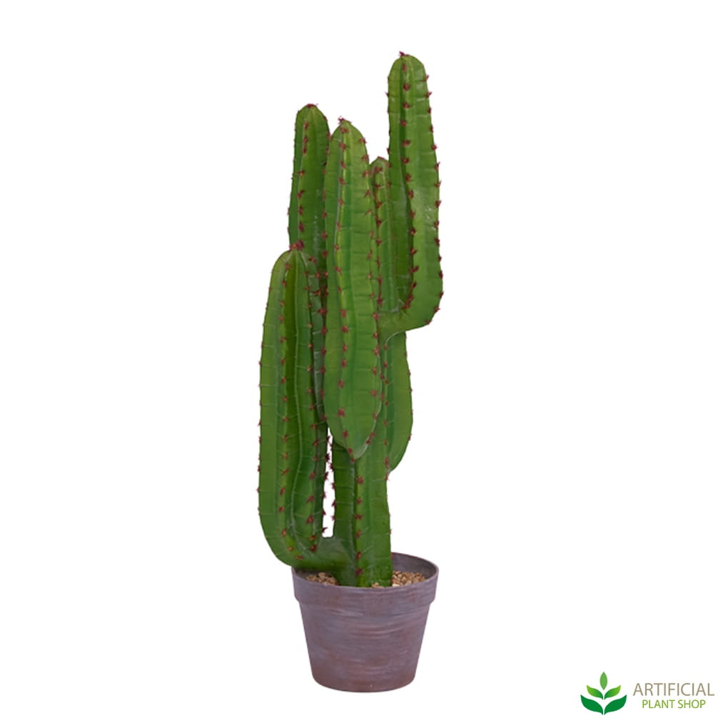 Straight from the wild west, directly to your door, this artificial Desert Cactus stays picture perfect all year round! Paired with a light charcoal grey pot and light coloured pebbles to match the desert theme. This Cactus features multiple stems, branching out from the singular trunk.