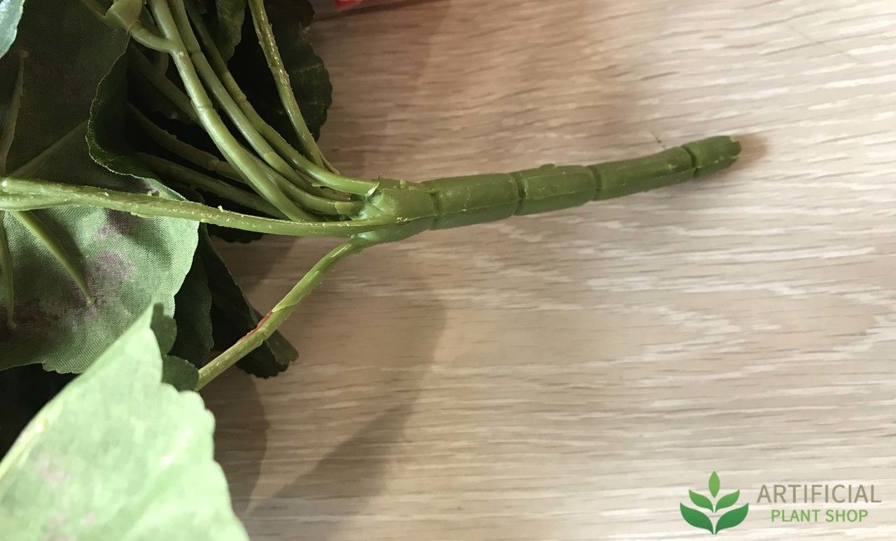 Gorgeous combination, Peach Geranium flowers with lush green leaves. This Peach coloured Geranium Trail Bush looks very lifelike. High quality and you’ll notice the excellent attention to detail… check out the veins on each leaf! Please note these Geranium Trails come in packs of 6, so when purchasing one, you will receive one pack of 6. Only one is pictured above.