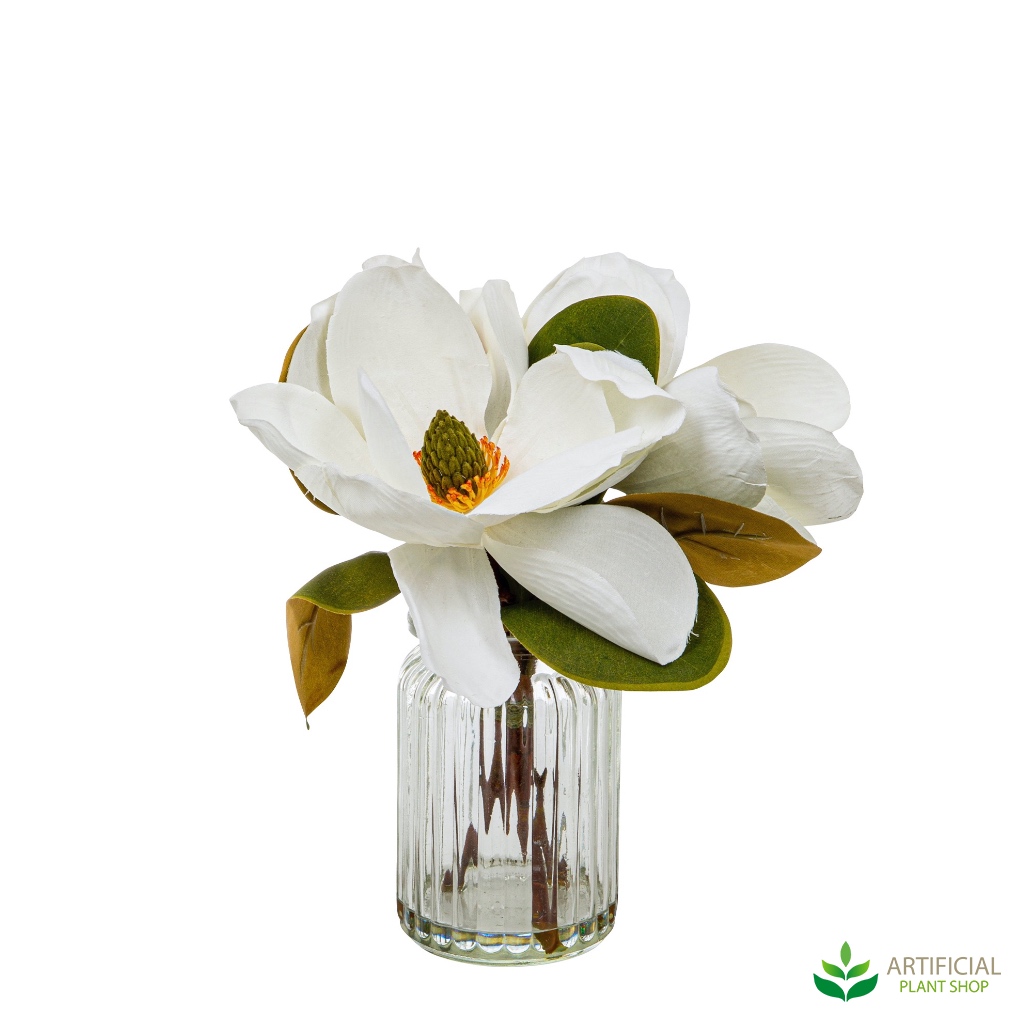 Small table decorations are a great way to introduce a hint of colour and a sense of nature to your space. Above we have Magnolia Flowers in a glass vase, with artificial water at the base. This not only makes it look more real, but also holds the flower stems in place so you don’t need to worry about styling them to look completely natural… it’s already done for you! Think about placing these in those smaller areas of your home or office: Bathrooms, Butlers Pantry’s, coffee tables, on book shelves and so much more. Start enjoying the hassle free lifestyle that high quality artificial flowers offer, today.