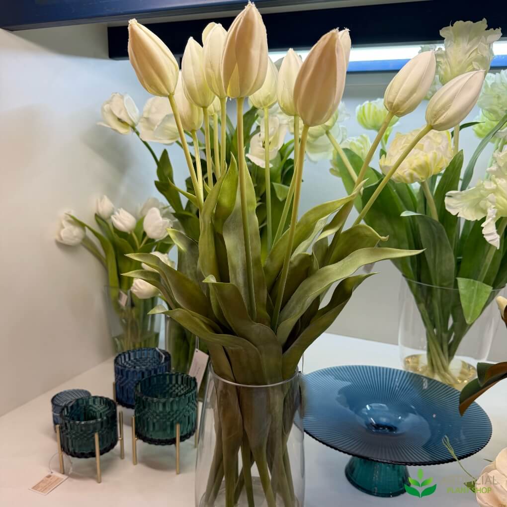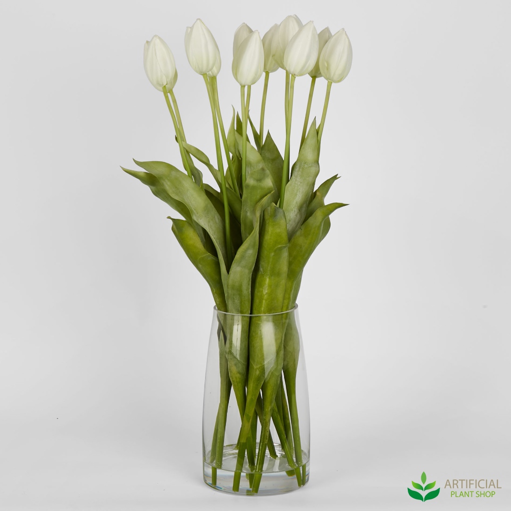 Crisp, serene, and beautifully simple, this arrangement of white tulips in a 65cm tall clear glass vessel is the epitome of understated elegance. Each tulip is artfully arranged to mimic the natural growth and grace of fresh-cut flowers, set in a transparent resin that gives the illusion of pure water. Perfect for creating an atmosphere of calm and purity, this piece will be a timeless addition to any decor, inviting a sense of renewal and tranquility into your space.